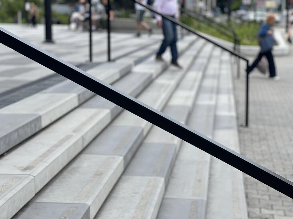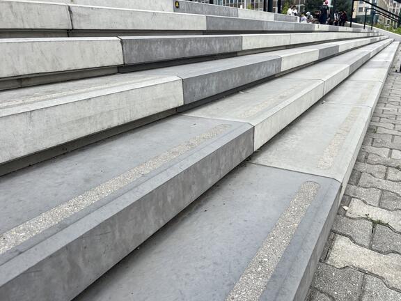 Za ovaj projekt proizveli smo i isporučili L-oblikovana gazna područja za stepenice koja kombiniraju funkcionalnost s modernim dizajnom. Kombinacija sivog betona s antracitnim elementima stvara moderan arhitektonski element. Integrirana LED rasvjeta ne samo da povećava sigurnost, već i stvara atmosferu modernog urbanog prostora. Projekt demonstrira naše mogućnosti u proizvodnji složenih betonskih elemenata s integriranim tehnologijama.